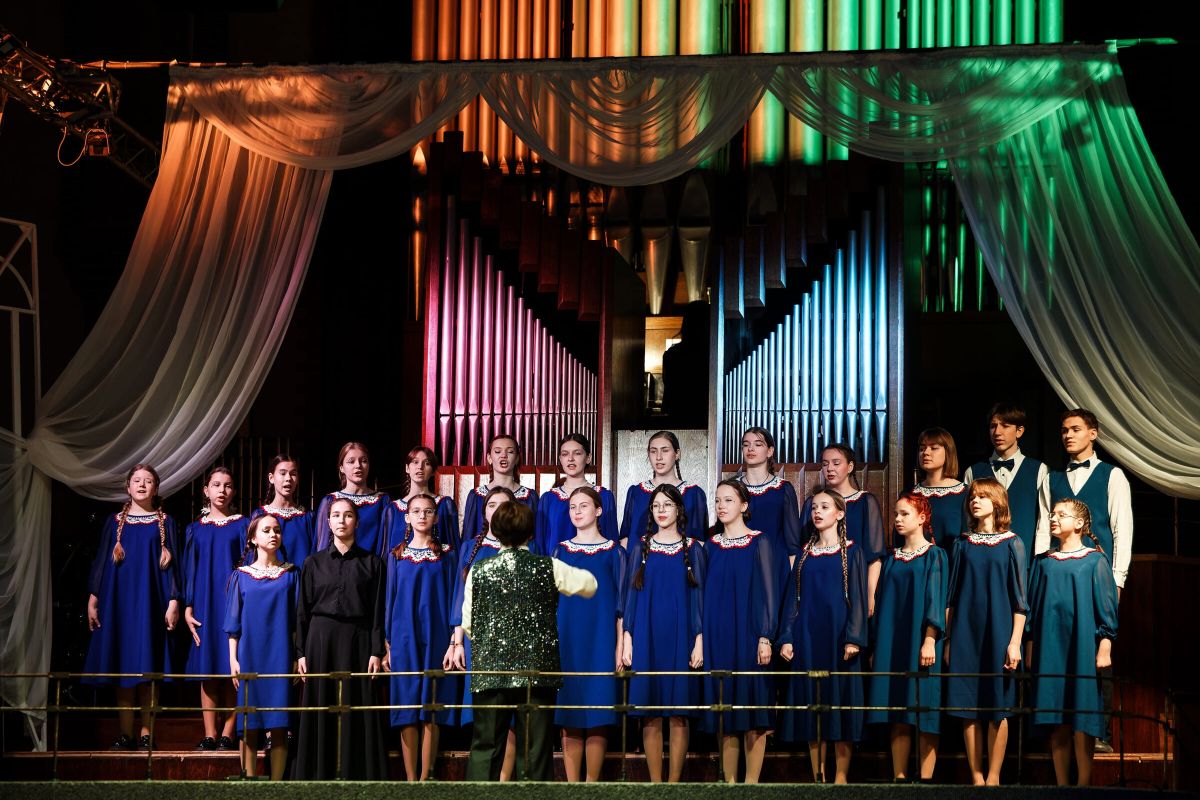 Детский хор «Мелодия» под руководством преподавателя нашей школы Заслуженного работника культуры Елены Владимировны Прокуратовой исполнил рождественские произведения, попурри на темы новогодних песен и произведения под орган.