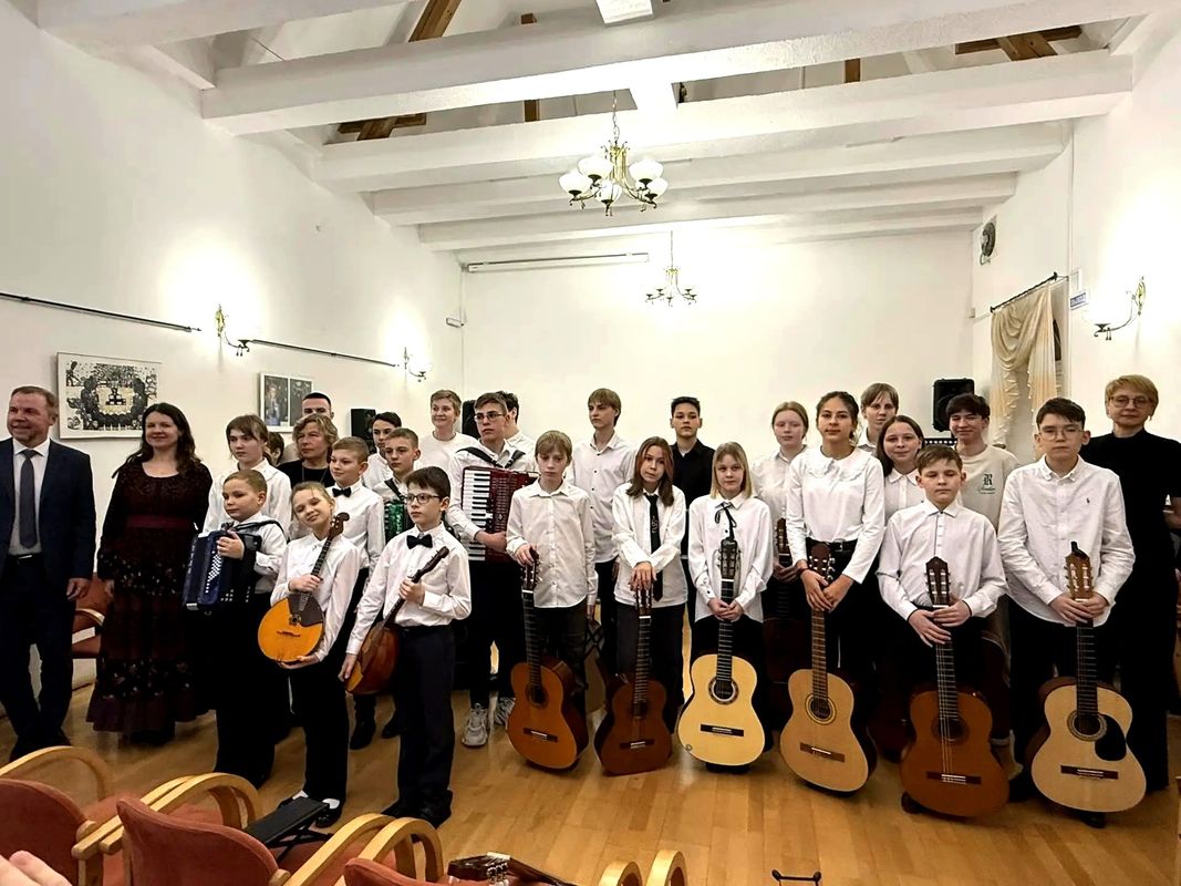 Ярким, зажигательным и по-настоящему душевным получился концерт отделения народных инструментов «Русские узоры». На сцене выступили домристы, гитаристы, аккордеонисты и баянисты.