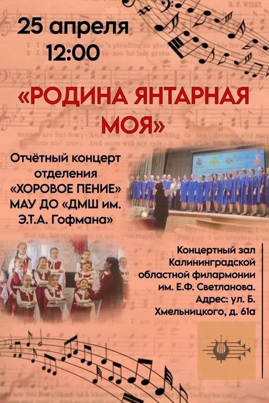 25 апреля состоится отчетный концерт отделения хорового пения и хоровых дисциплин "Родина янтарная моя".